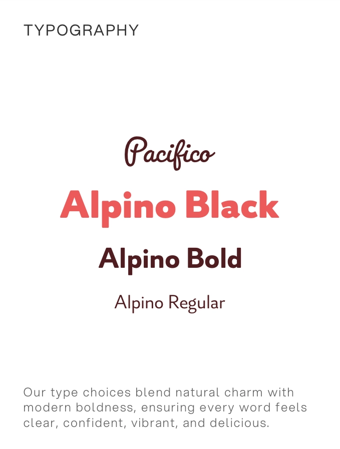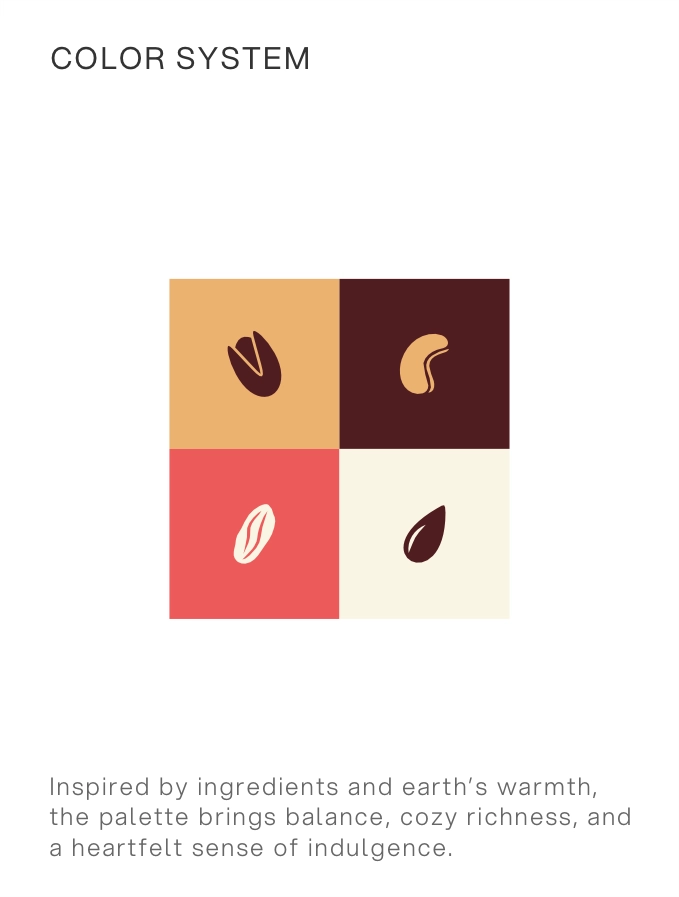 The creative direction was rooted in contemporary Italian aesthetics — warm terracottas, creamy neutrals, and sunlit tones inspired by the Mediterranean palette. A confident serif wordmark and playful, rounded iconography were crafted to represent flavor, energy, and mindful satisfaction. The identity reflects both authenticity and modern charm, echoing Italy’s design sensibility and culinary passion.