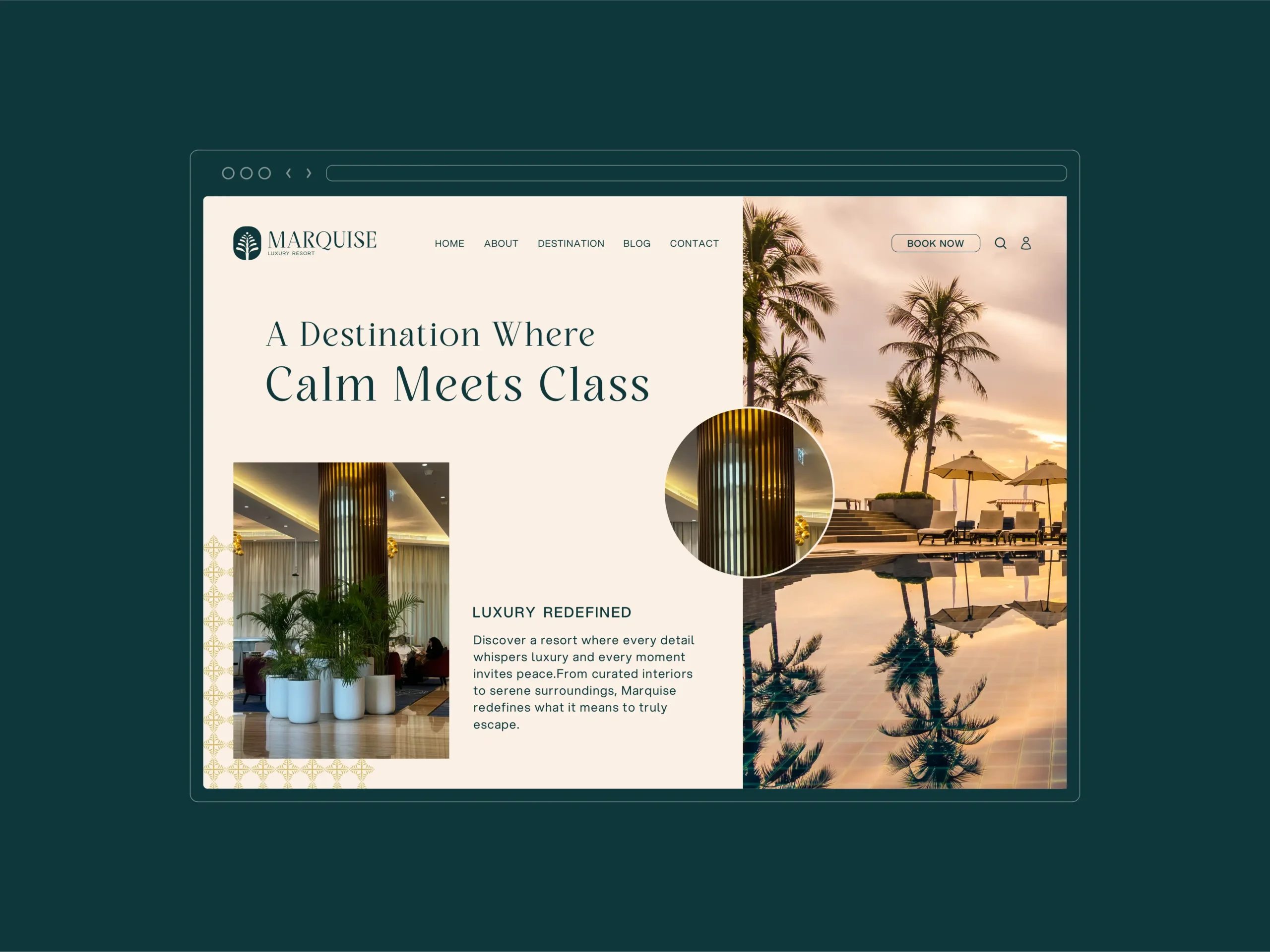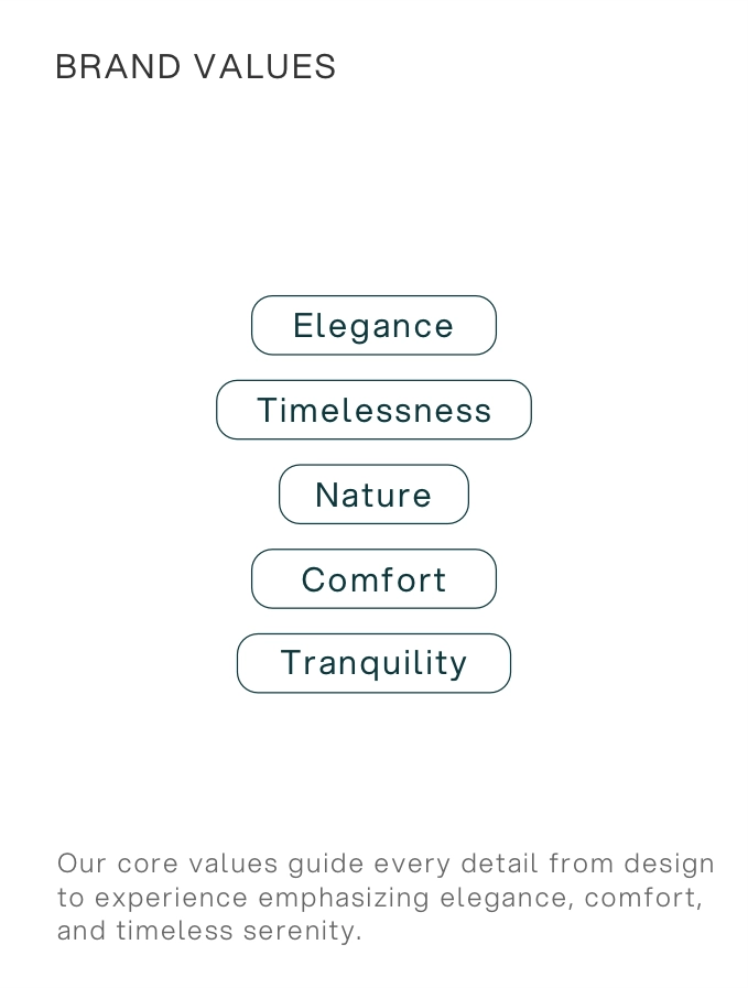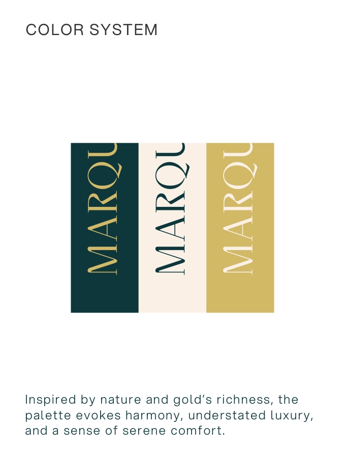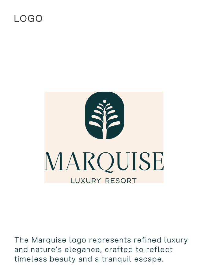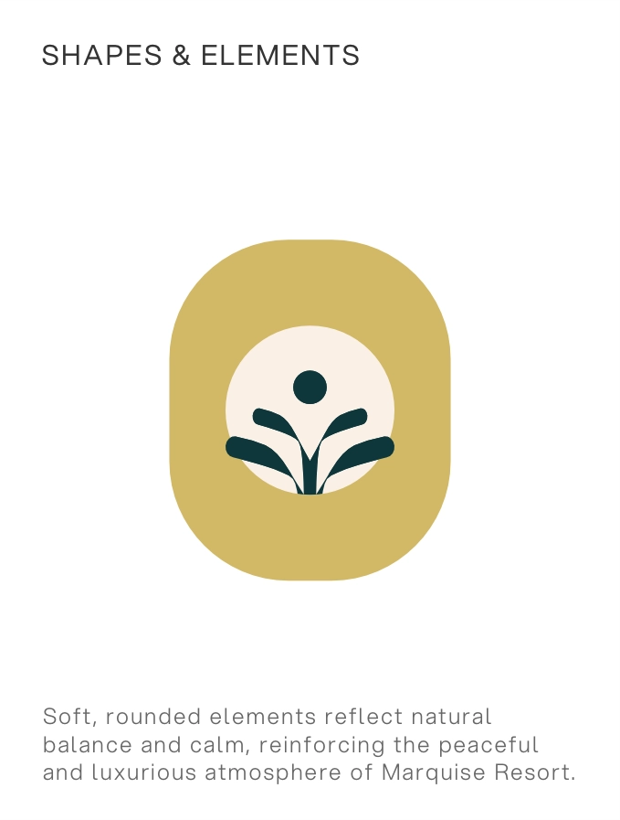 Marquise Resort is a luxurious escape where elegance meets tranquillity. Nestled in nature, the resort offers a curated blend of timeless design, warm hospitality, and refined experiences. From sunlit mornings to candlelit evenings, every space is crafted to elevate the senses and invite serenity. The brand identity reflects this philosophy – natural, sophisticated, and immersive.