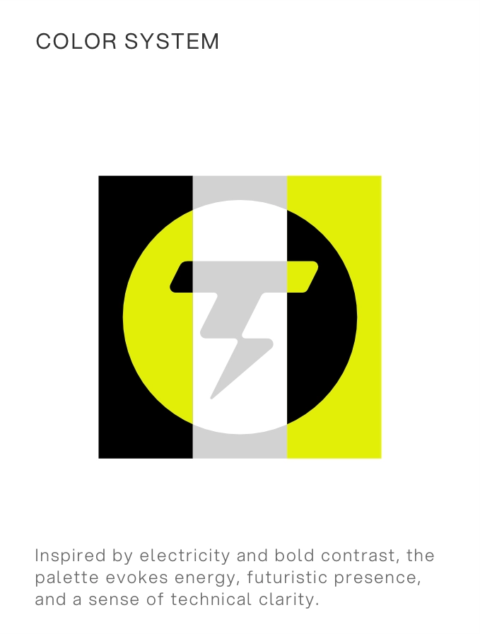The creative direction draws inspiration from contemporary Chinese aesthetics bold contrasts, industrial greys, and electric tones that reflect the brand’s dynamic and forward-thinking nature. A sharp geometric wordmark paired with a lightning-inspired icon was crafted to symbolize energy, connectivity, and smart performance. The identity reflects both cutting-edge innovation and clean design clarity, aligned with global tech sensibilities.